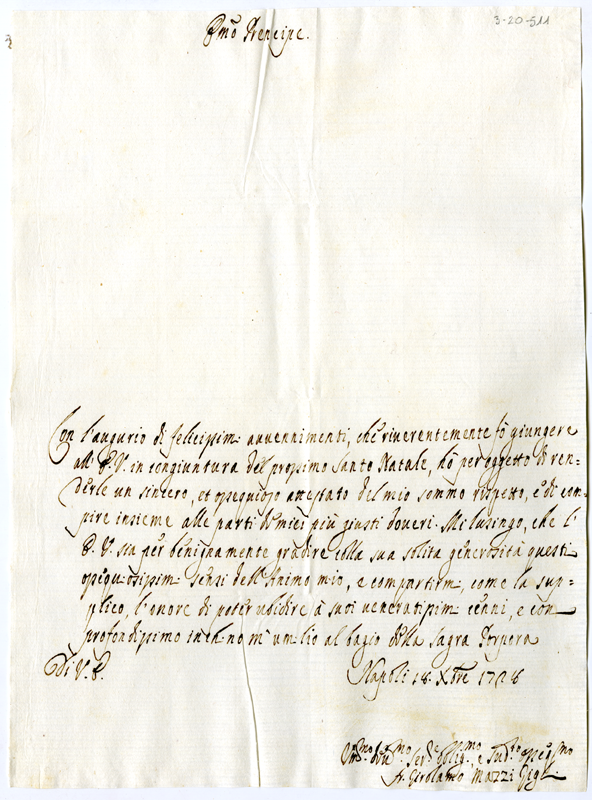 Lettera di Girolamo Mazzi Gigli al cardinale Annibale Albani (1728 dicembre 18)