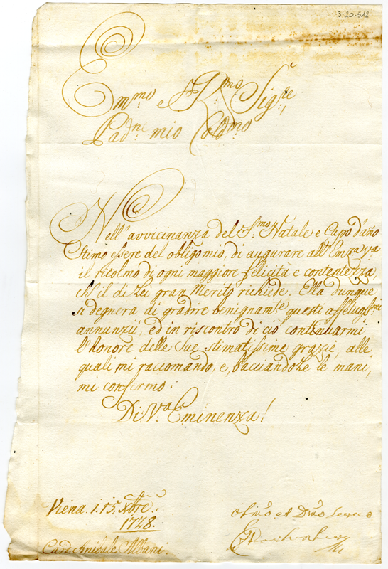 Lettera al cardinale Annibale Albani (1728 dicembre 15)