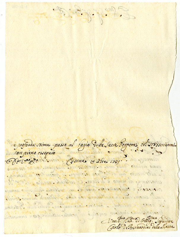 Lettera di Carlo de Bernardini della Massa al cardinale Annibale Albani (1729 dicembre 14)