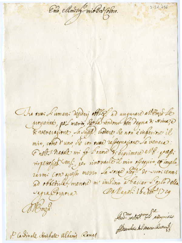 Lettera del marchese di San Marco al cardinale Annibale Albani (1729 dicembre 18)