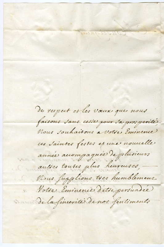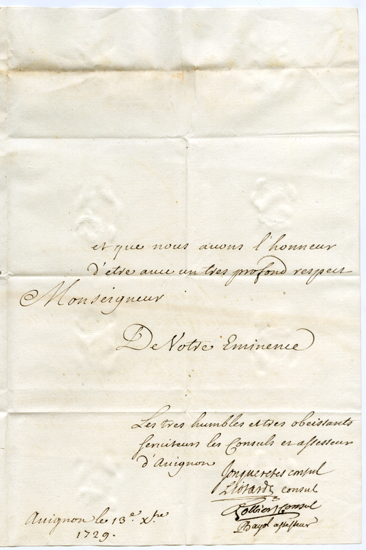 Lettera dei consoli della città di Avignone al cardinale Annibale Albani (1729 dicembre 13)