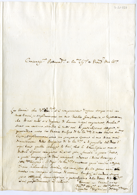 Lettera del visconte Giustiniani al cardinale Annibale Albani (1729 dicembre 10)