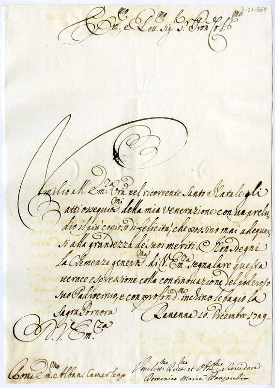 Lettera di Domenico Maria Panzacchi al cardinale Annibale Albani (1729 dicembre 10)