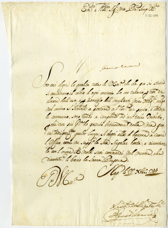 Lettera del duca di Lauria al cardinale Annibale Albani (1714 dicembre 22)