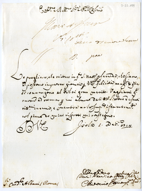 Lettera al cardinale Annibale Albani (1714 dicembre 1)