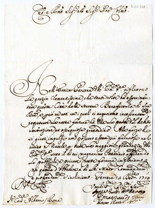 Lettera al cardinale Annibale Albani (1714 dicembre 12)