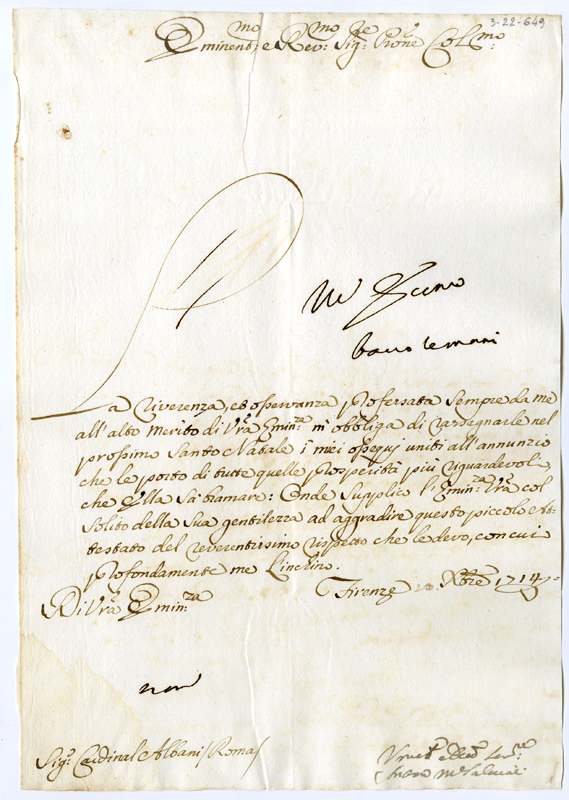 Lettera di Anton Maria Salviati al cardinale Annibale Albani (1714 dicembre 10)