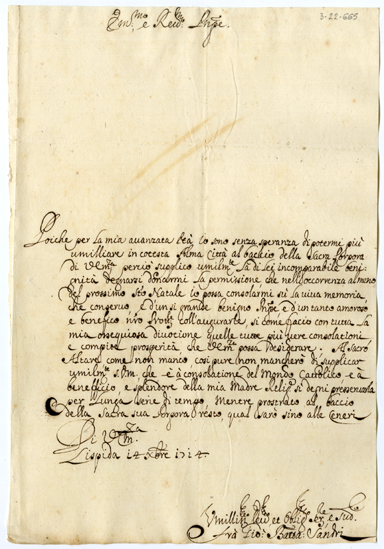 Lettera di Giovanni Battista Sandri al cardinale Annibale Albani (1714 dicembre 14)