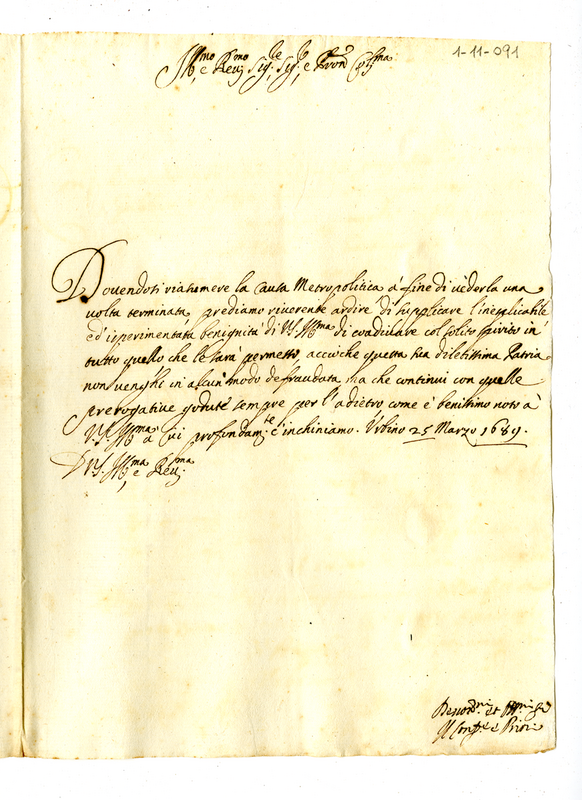 Lettera del gonfaloniere e dei priori di Urbino a mons.Giovanni Francesco Albani (1689 marzo 25)