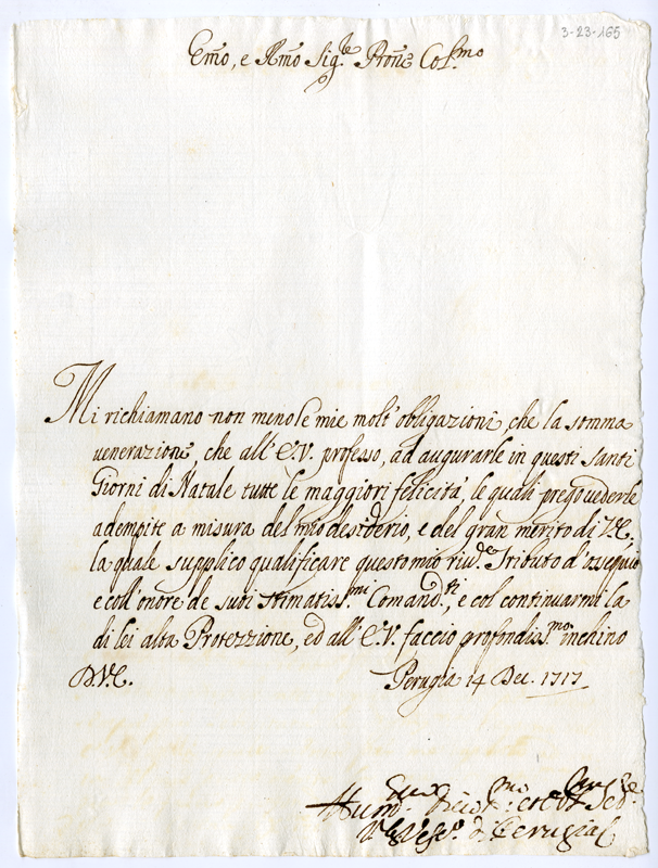 Lettera del vescovo di Perugia al cardinale Annibale Albani (1717 dicembre 14)