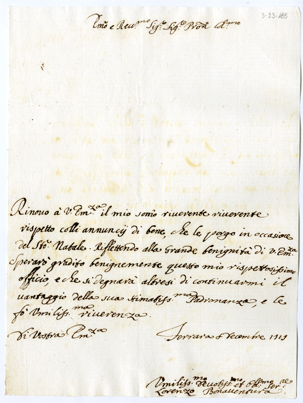 Lettera di Lorenzo Bonaventura al cardinale Annibale Albani (1717 dicembre 8)