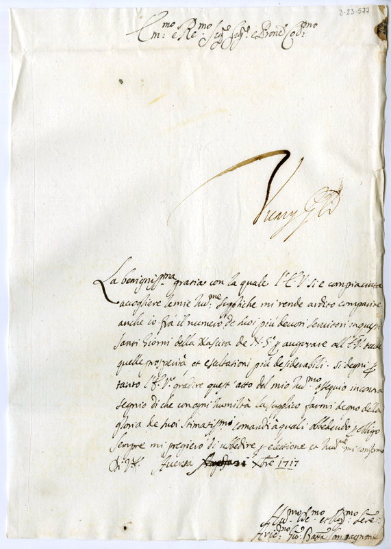 Lettera di Giovanni Battista Compagnone al cardinale Annibale Albani (1717 dicembre 21)
