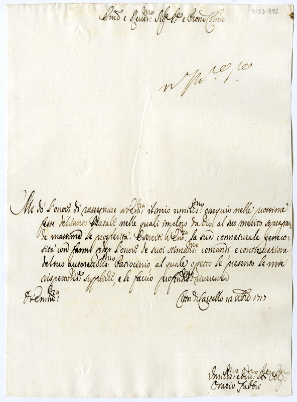 Lettera di Orazio Fabbri al cardinale Annibale Albani (1717 dicembre 12)