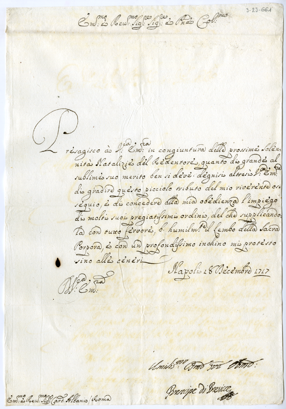 Lettera del principe di Presicce al cardinale Annibale Albani (1717 dicembre 18)