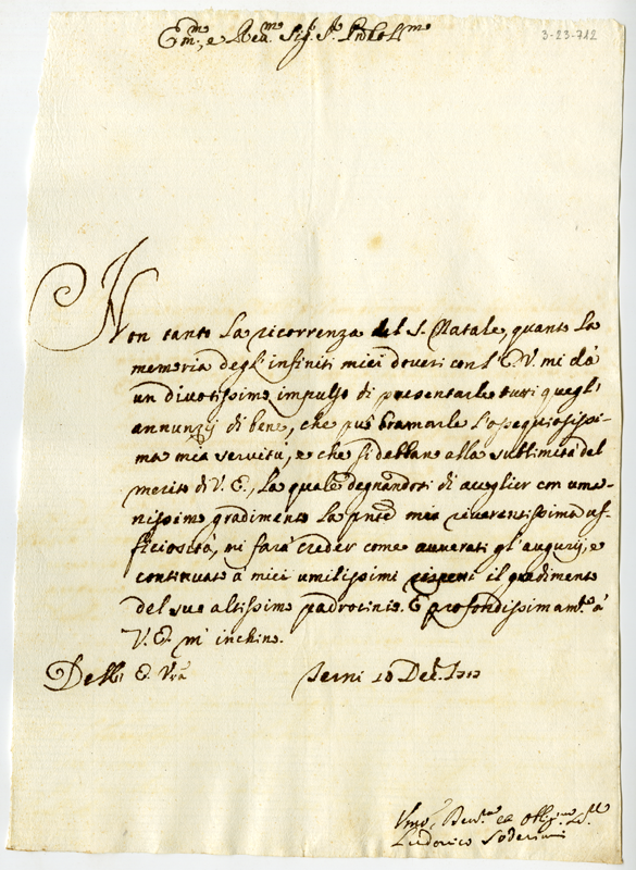 Lettera di Ludovico Soderini al cardinale Annibale Albani (1717 dicembre 10)