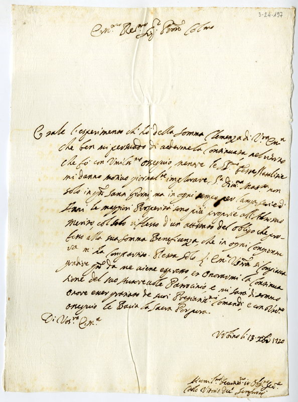 Lettera di Carlo Vittorio Semproni al cardinale Annibale Albani (1720 dicembre 13)