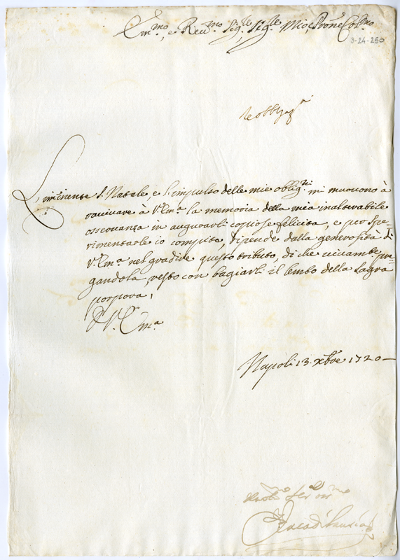 Lettera del duca di Lauria al cardinale Annibale Albani (1720 dicembre 13)