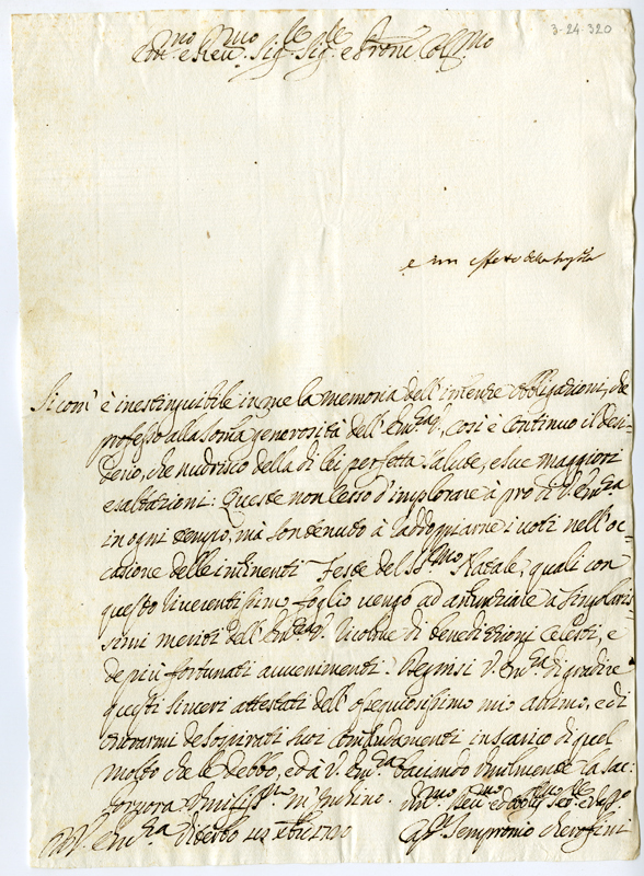 Lettera di Sempronio Cherofini al cardinale Annibale Albani (1720 dicembre 18)