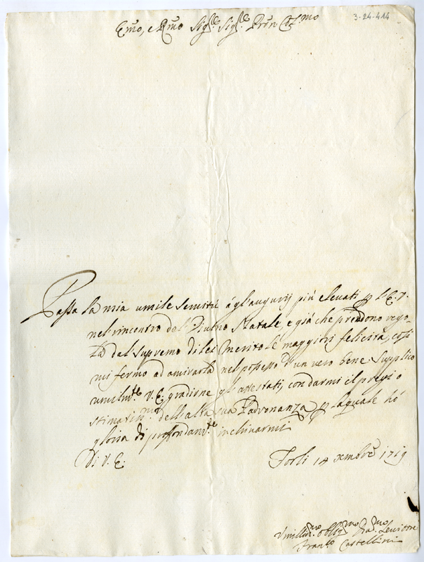 Lettera di Francesco Castellini al cardinale Annibale Albani (1719 dicembre 14)