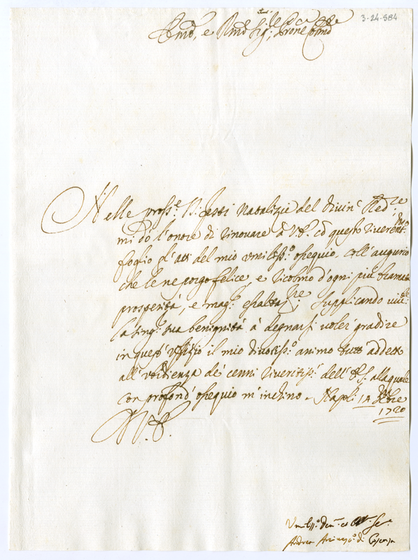 Lettera di Andrea arcivescovo di Cosenza al cardinale Annibale Albani (1720 dicembre 14)
