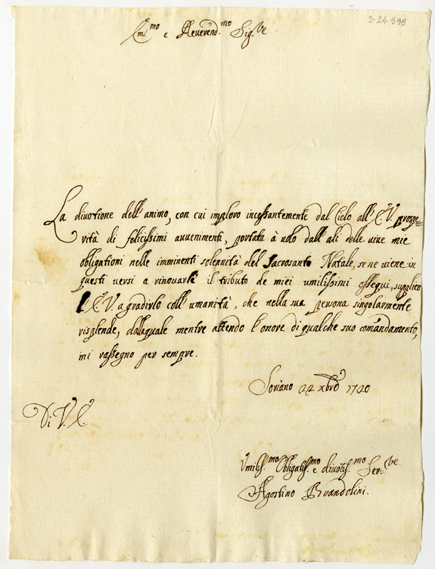 Lettera di Agostino Brandolini al cardinale Annibale Albani (1720 dicembre 22)