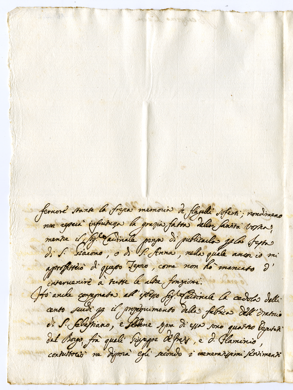 Ringraziamento per il sussidio di Clemente XI in favore dell'oratorio di S. Sebastiano e per il breve di indulgenza da lui inviato ad Urbino. Espone i sentimenti di obbedienza del cardinale arcivescovo alla volontà del pontefice e altri ringraziamenti
