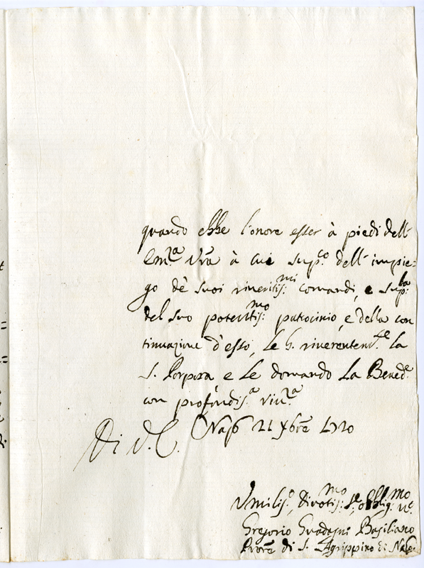 Lettera di Gregorio Guadagni al cardinale Annibale Albani (1720 dicembre 21)