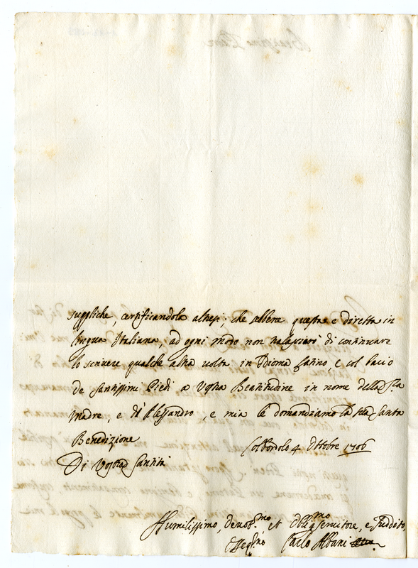 Lettera di Carlo Albani a papa Clemente XI (1706 ottobre 4)