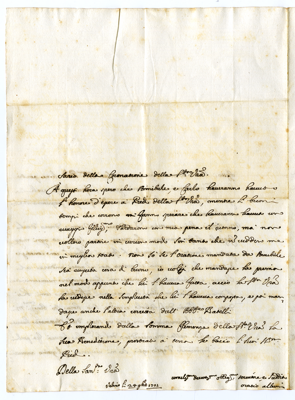 Lettera di Orazio Albani junior a papa Clemente XI 1701 ottobre 17)