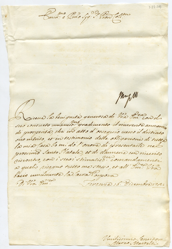 Lettera di Marco Martelli al cardinale Annibale Albani (1721 dicembre 16)