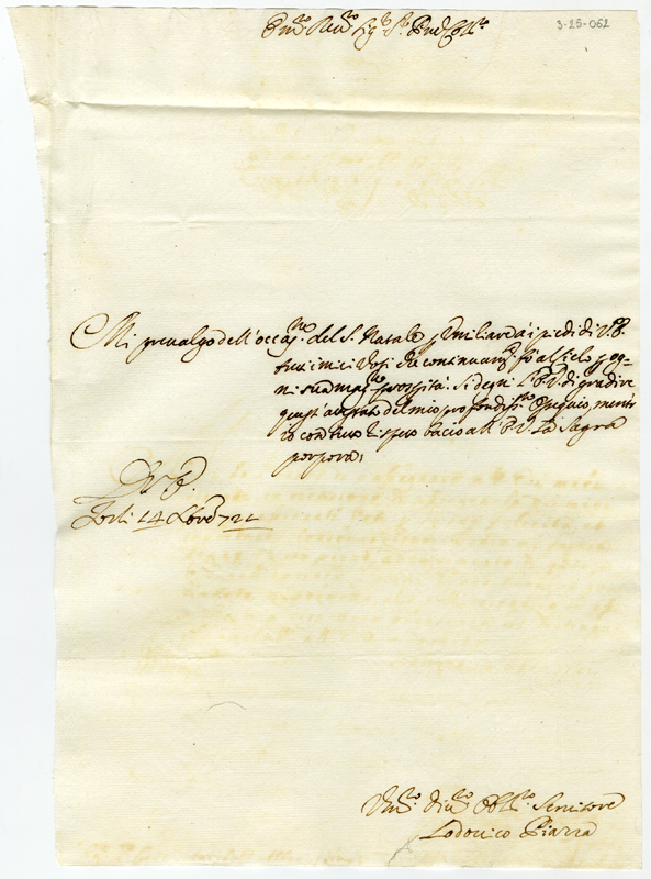 Lettera di Lodovico Piazza al cardinale Annibale Albani (1721 dicembre 14)