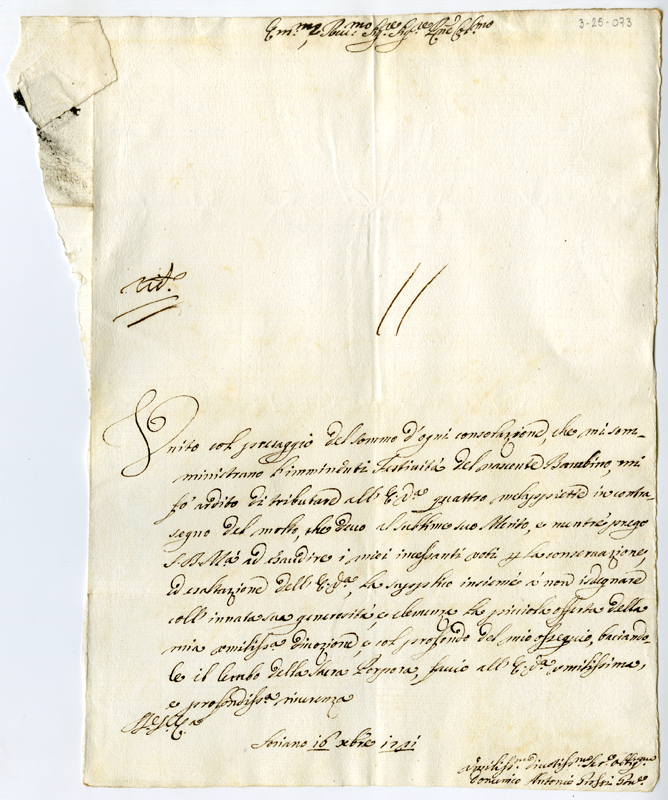 Lettera di Domenico Antonio Grossi al cardinale Annibale Albani (1721 dicembre 16)