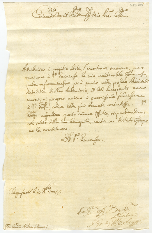 Lettera al cardinale Annibale Albani (1721 dicembre 13)