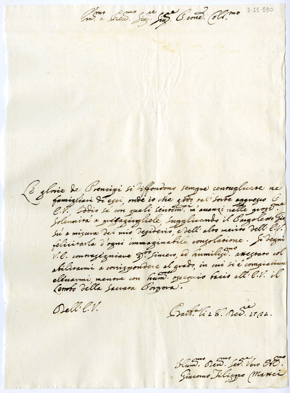 Lettera di Giacomo Filippo Mattei al cardinale Annibale Albani (1721 dicembre 28)