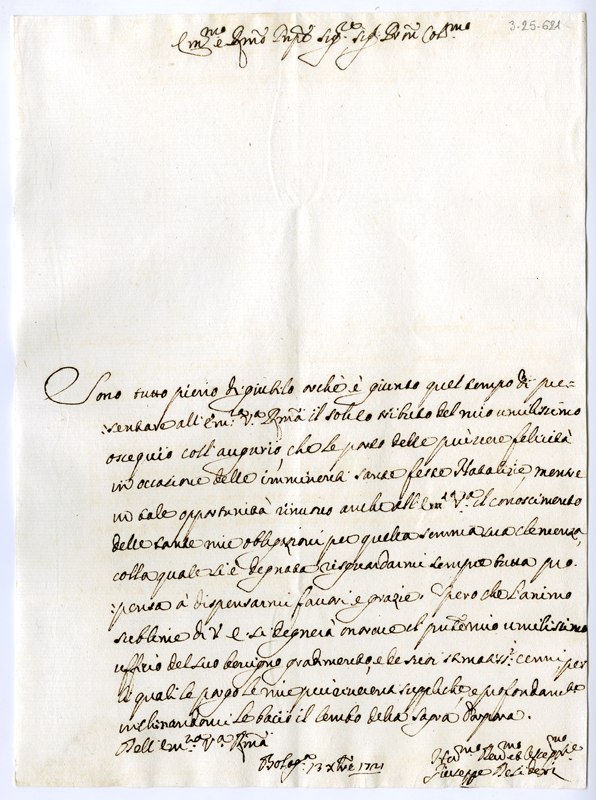 Lettera di Giuseppe Desideri al cardinale Annibale Albani (1721 dicembre 13)
