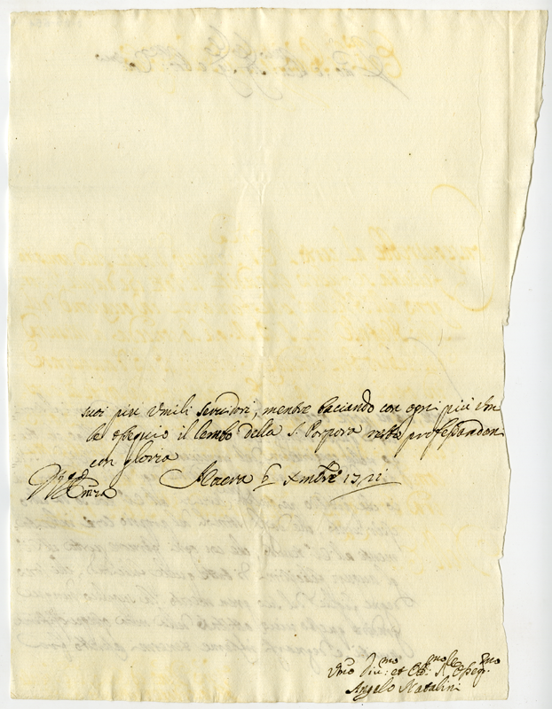 Lettera di Angelo Natalini al cardinale Annibale Albani (1721 dicembre 6)