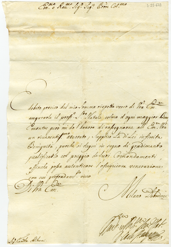 Lettera del conte Stampa al cardinale Annibale Albani (1721 dicembre)