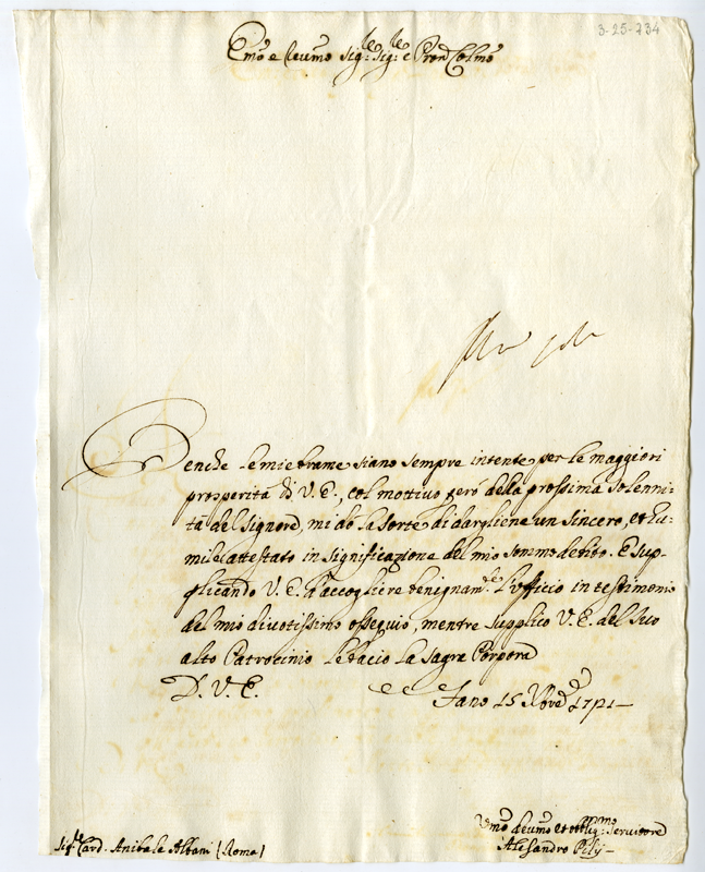Lettera di Alessandro Pili al cardinale Annibale Albani (1721 dicembre 15)
