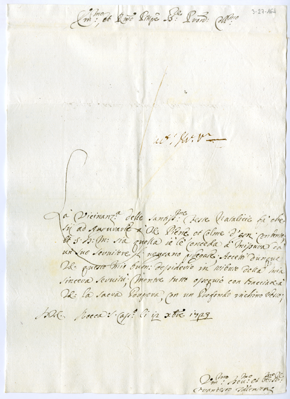 Lettera di Francesco Talentoni al cardinale Annibale Albani (1723 dicembre 12)