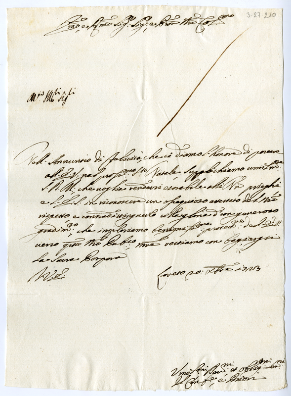 Lettera del confaloniere e priori di Loreto al cardinale Annibale Albani (1723 dicembre 20)