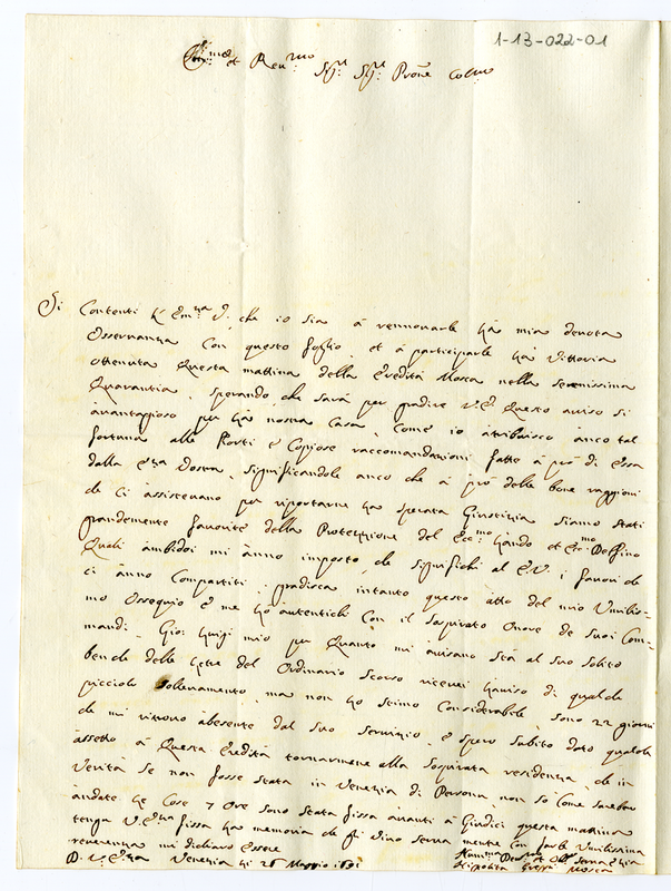Lettera di Hippolita Greppi Mosca a Giovanni Francesco Albani (1691 maggio 26)