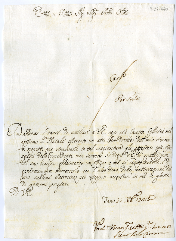 Lettera di Pietro Paolo Carrara al cardinale Annibale Albani (1723 dicembre 11)