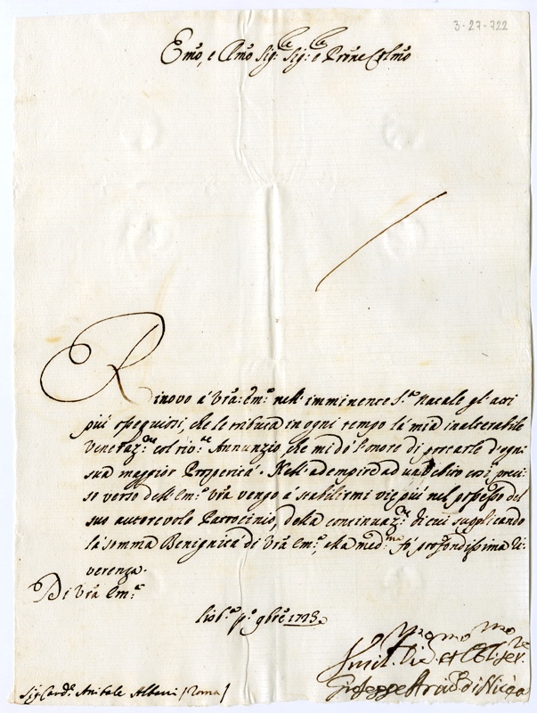 Lettera di Giuseppe arcivescovo di Nicea al cardinale Annibale Albani (1723 novembre 1)