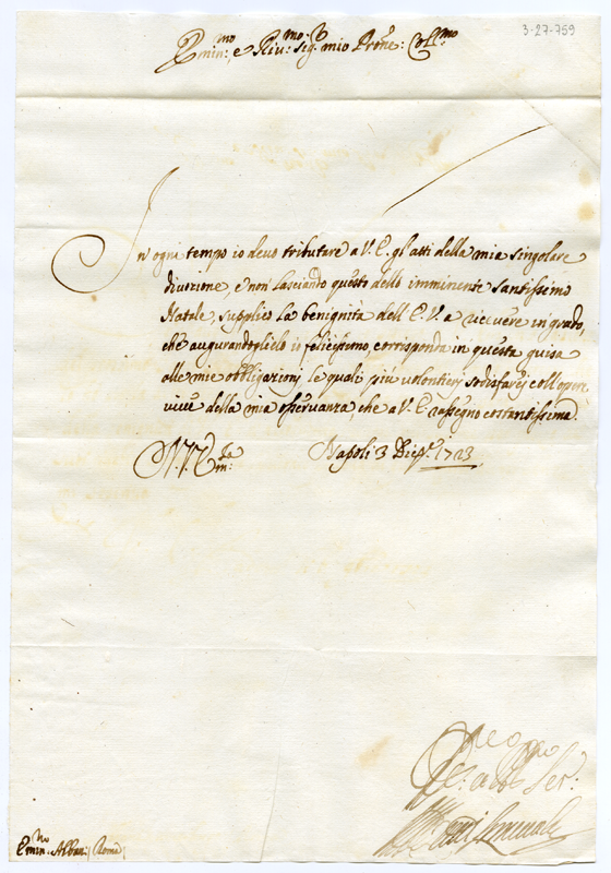 Lettera al cardinale Annibale Albani (1723 dicembre 3)