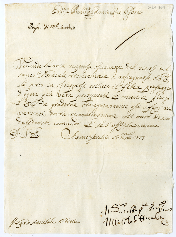 Lettera al cardinale Annibale Albani (1723 dicembre 15)