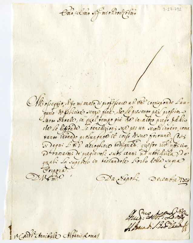 Lettera del duca di San Giovanni al cardinale Annibale Albani (1723 dicembre)