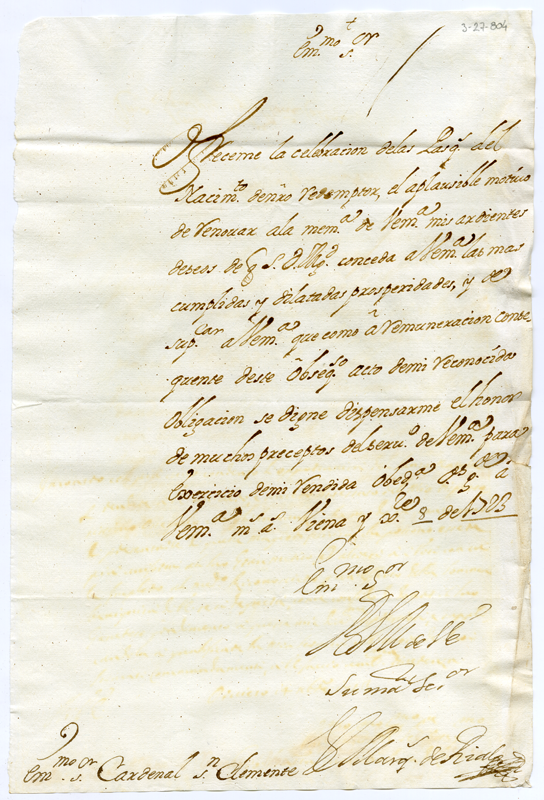 Lettera del marchese di Riale al cardinale Annibale Albani (1723 dicembre 8)