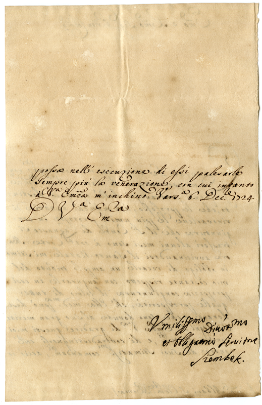 Lettera di Srembek al cardinale Annibale Albani (1724 dicembre 6)