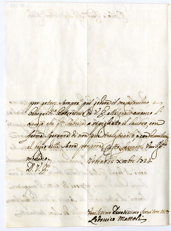 Lettera di Lodovico Mattoli al cardinale Annibale Albani (1724 dicembre 18)