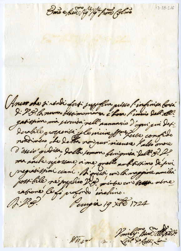 Lettera di Lorenzo de Rossi Leoni al cardinale Annibale Albani (1724 dicembre 19)